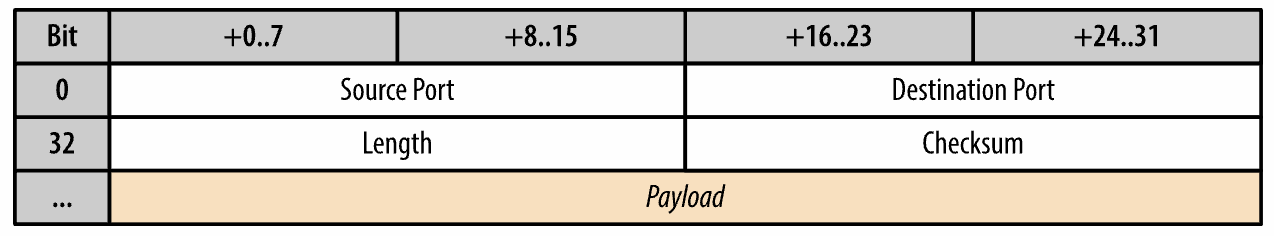 발신지 포트와 체크섬은 optional 이다. 체크섬(checksum)을 생략하면 모든 에러 탐지와 에러 복구가 그 위 계층에서 이뤄진다는 뜻이다.